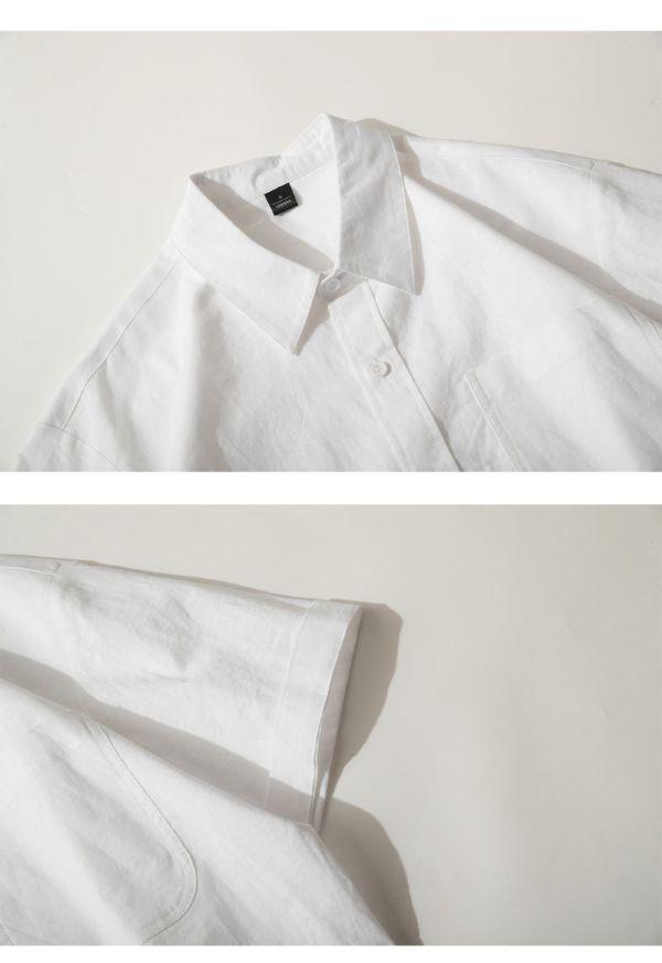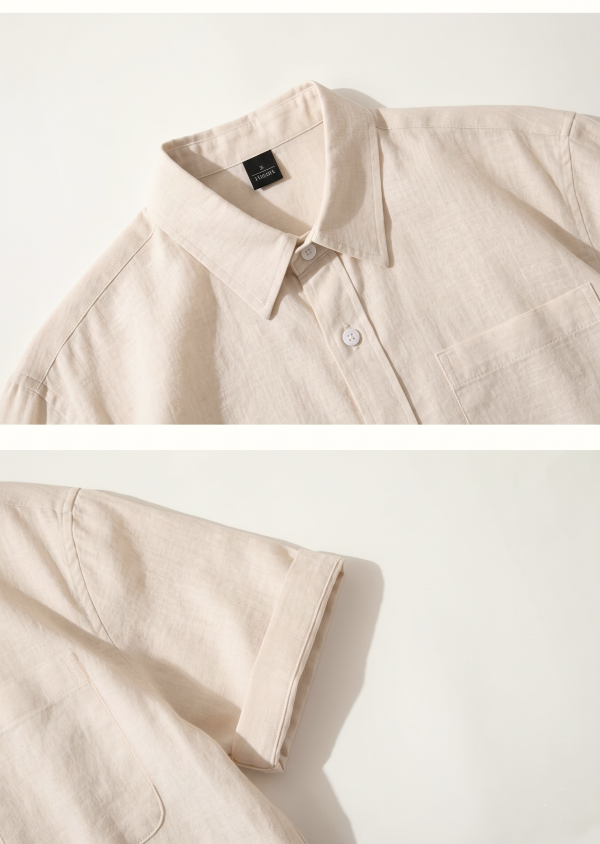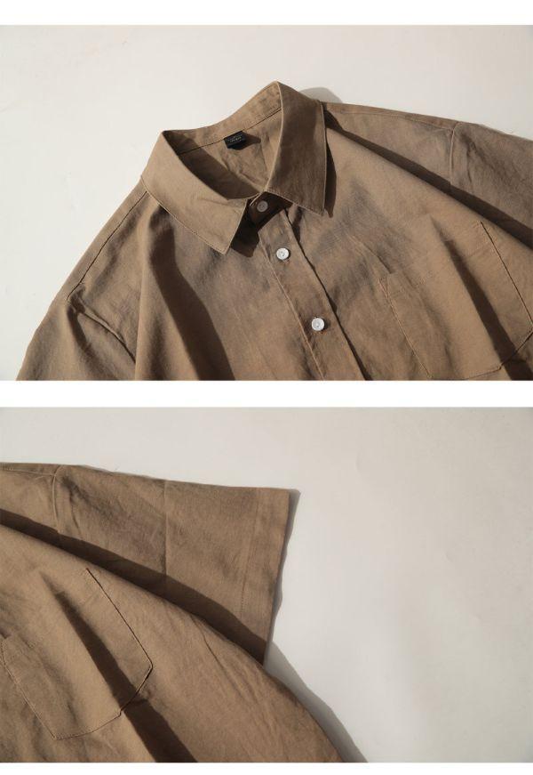 【預購】夏季亞麻質感純色短袖襯衫