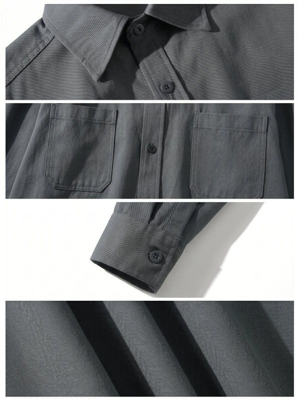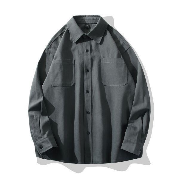 日系復古微工裝純色襯衫(灰色)