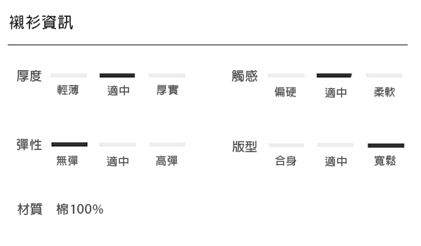 材質較輕薄,且版型寬鬆,下擺、袖長較短一些
